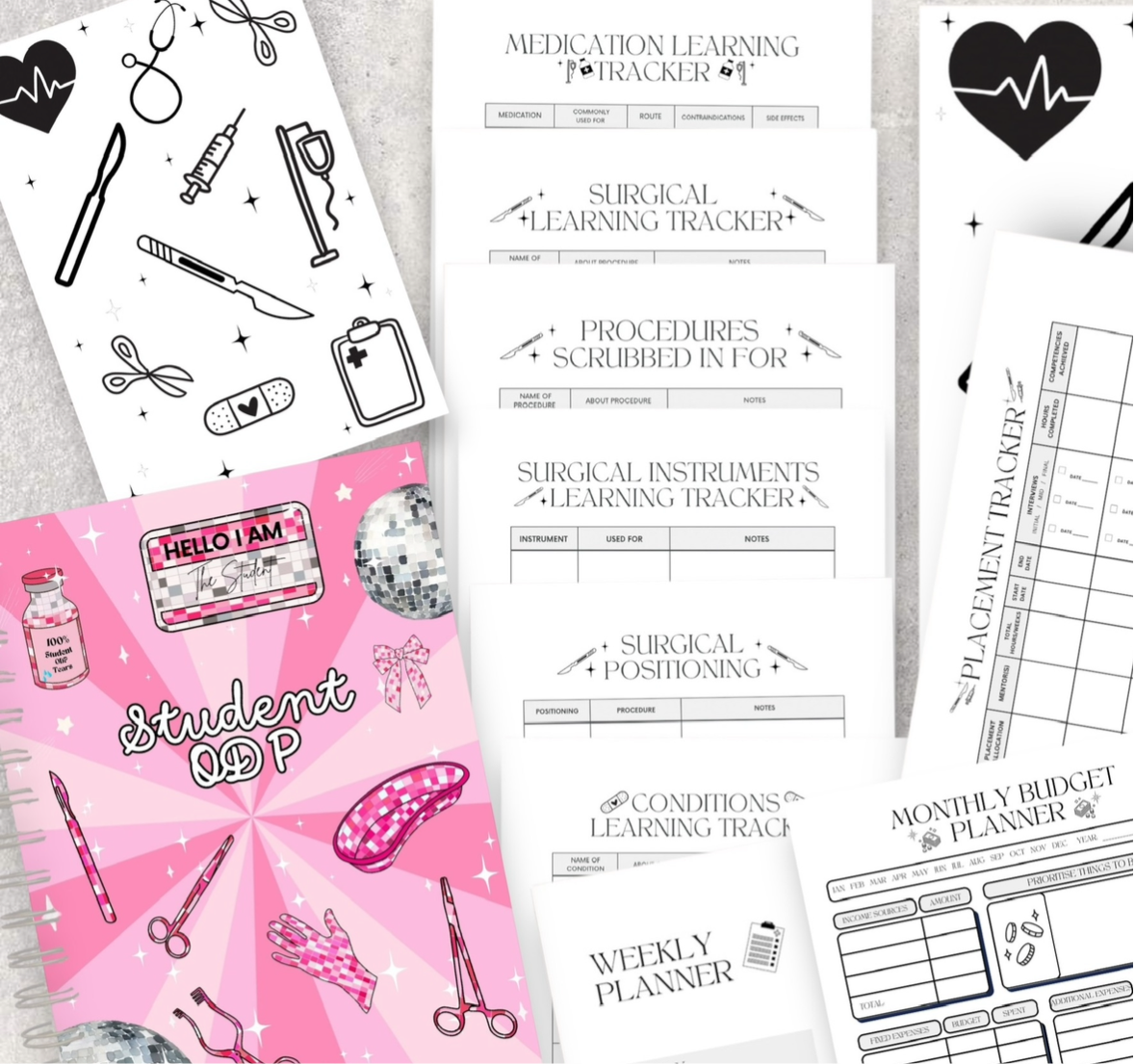 - A year of undated weekly planner pages, Monday to Sunday with a box for Self Care!