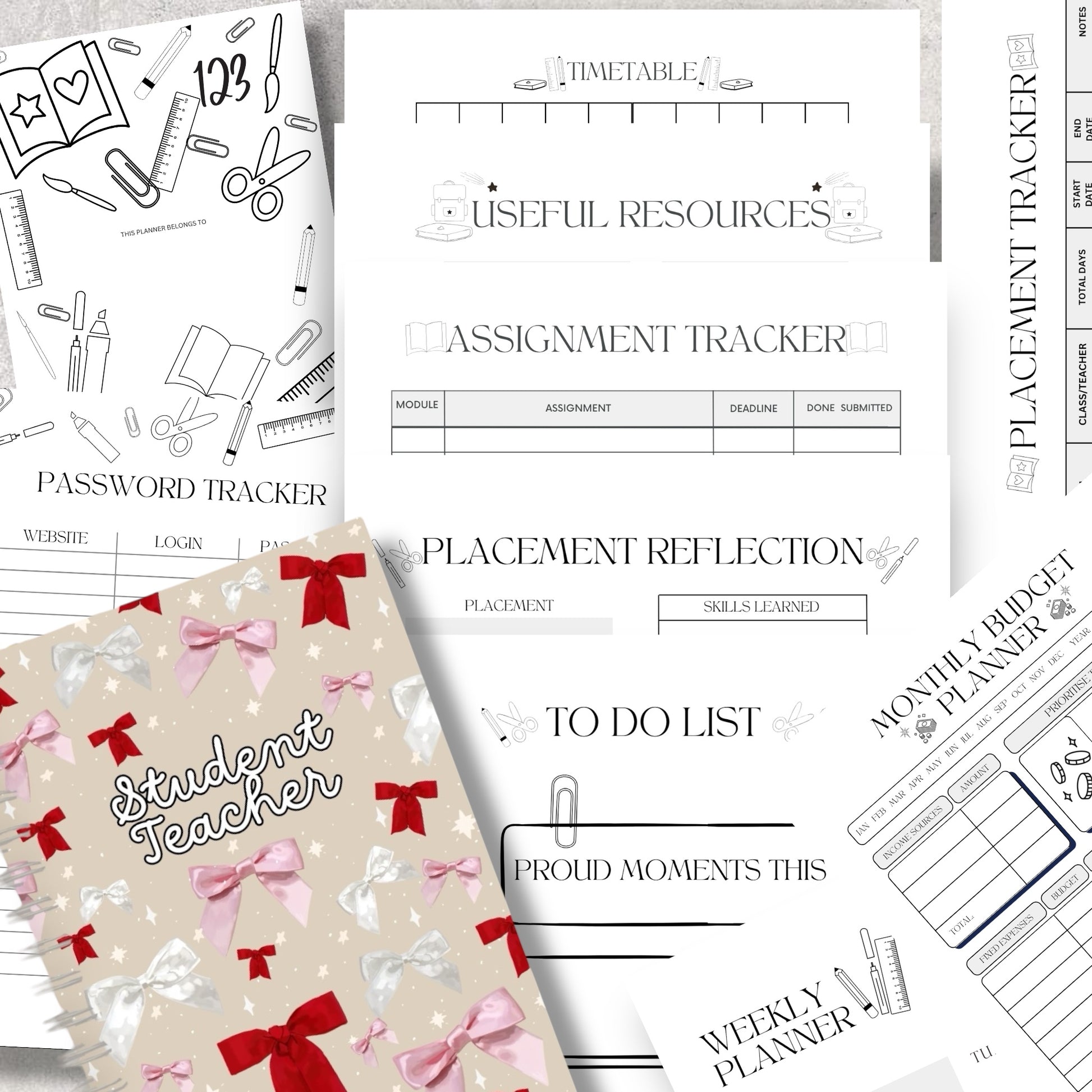Undated, weekly planners for Student Teachers. A5, wiro bound, hardback 'soft touch' laminated cover &, high quality inner paper (120gsm).