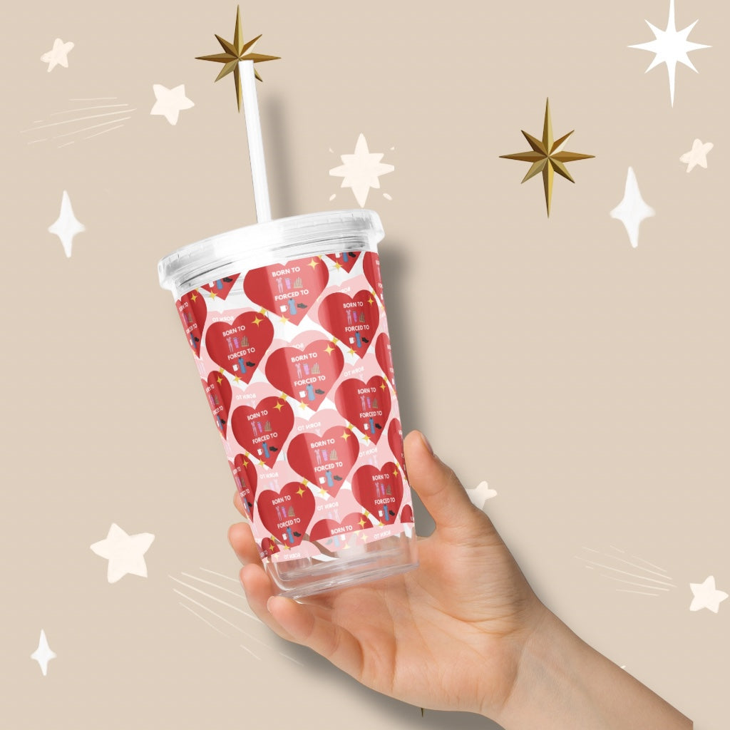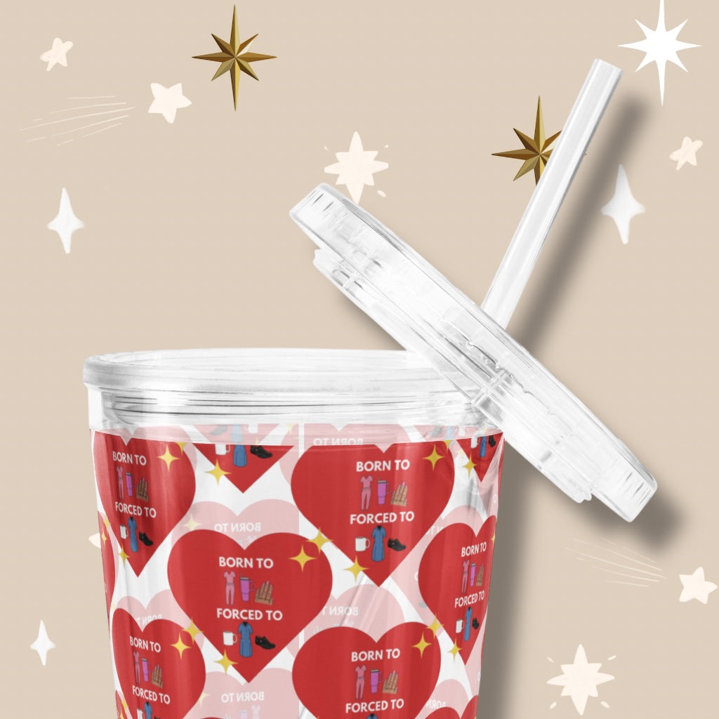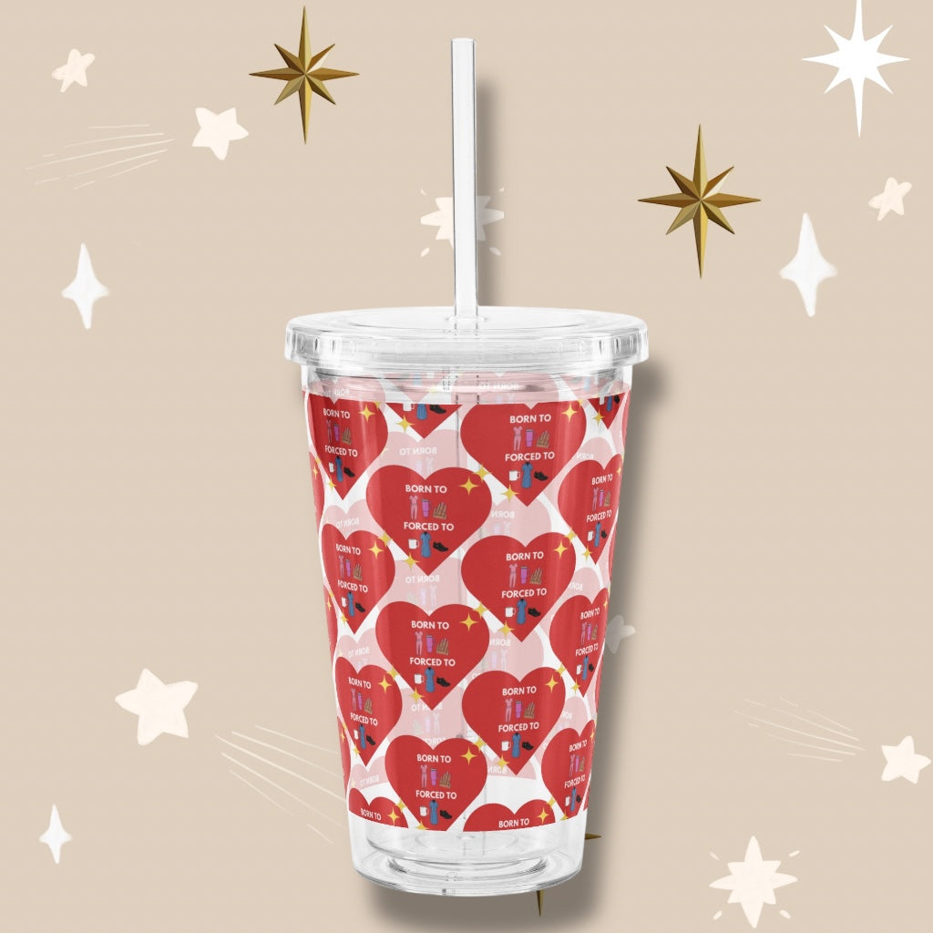 ‘Born To Forced To’ Plastic Tumbler with Straw