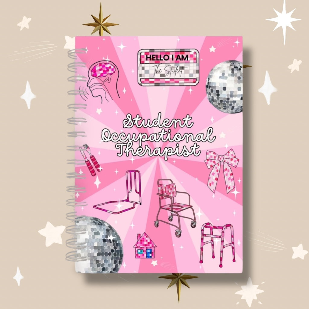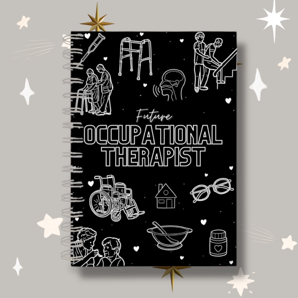 A softcover, undated weekly planner with helpful pages for an OT student, A5 & Wirobound with a soft-touch laminated hard front cover and 100gsm inner paper.