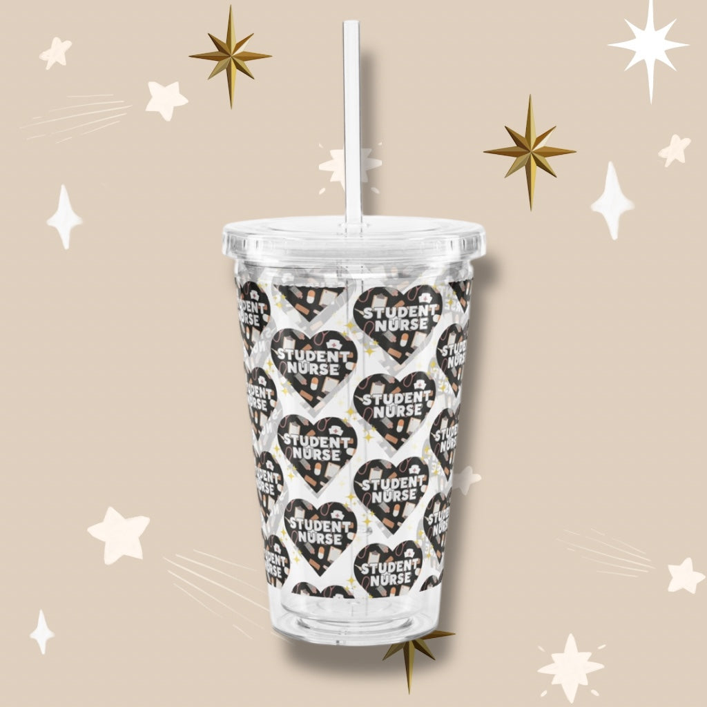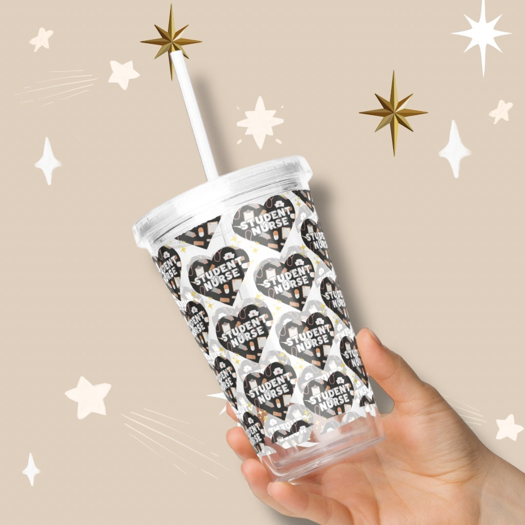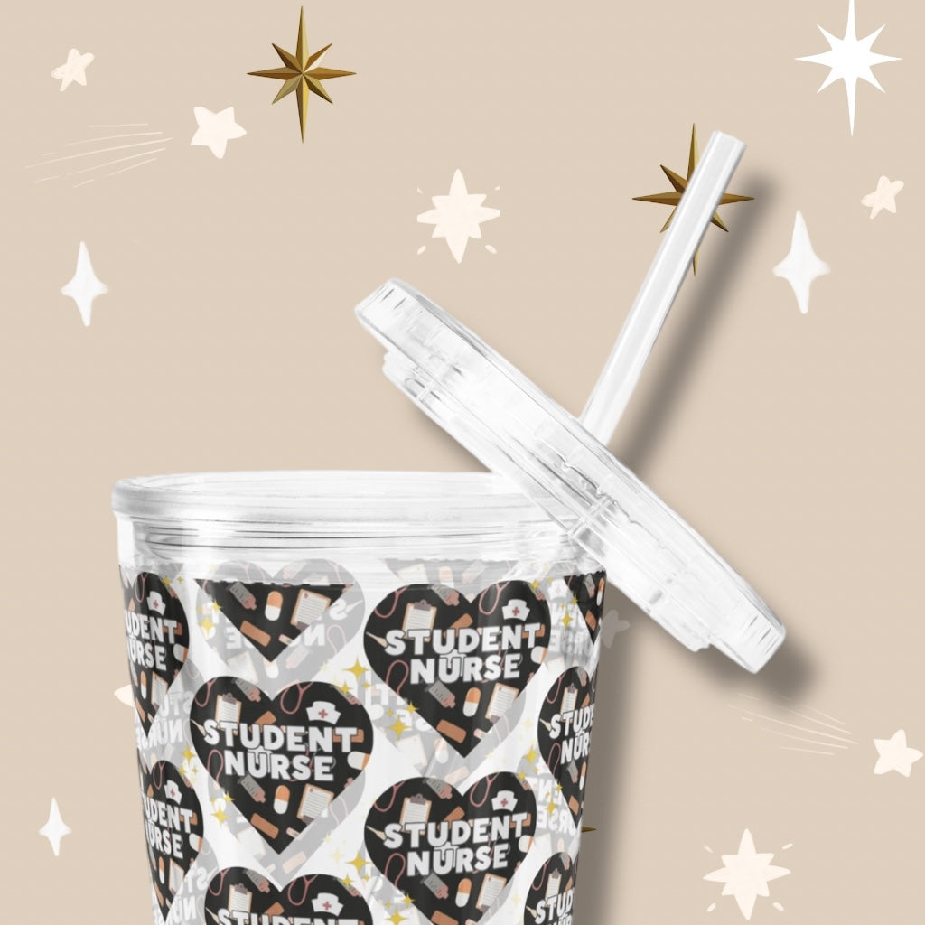 Student Nurse ‘Black Heart’ Clear Plastic Tumbler with Straw